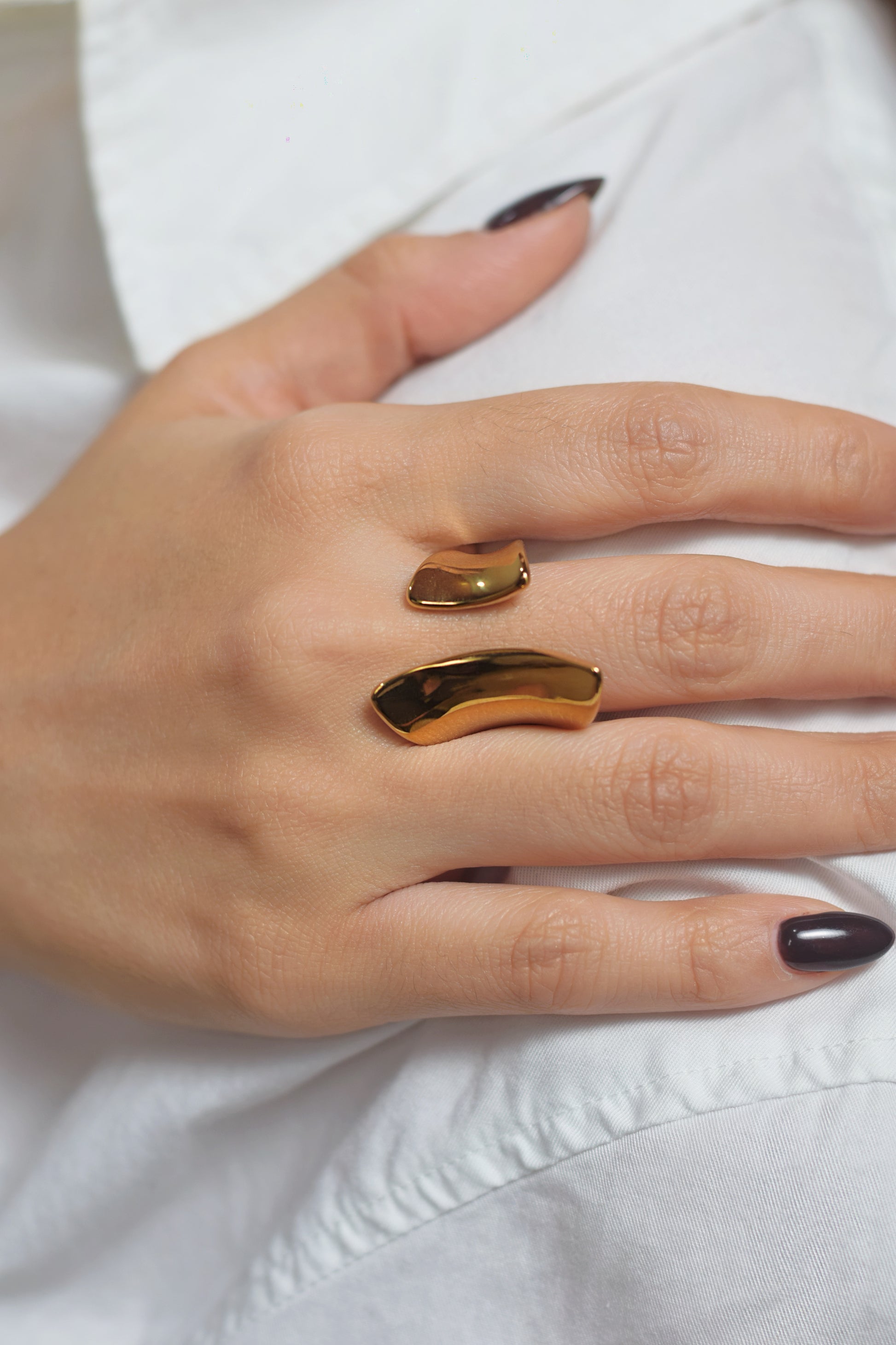 Este anillo Sculpture combina arte y elegancia en una pieza única que parece una verdadera escultura dorada. Su diseño sofisticado realza cualquier estilo, ofreciendo un toque de distinción y modernidad.